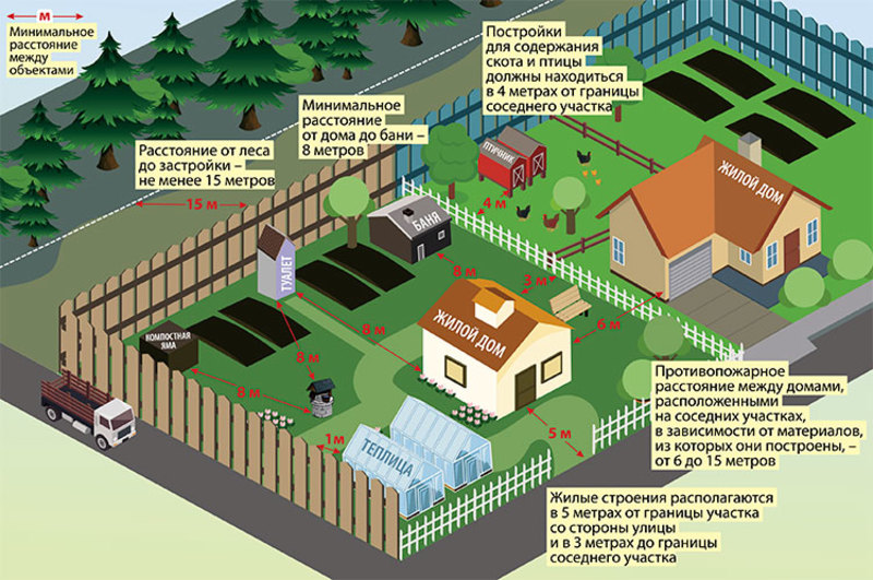 -В идеале участок должен быть с небольшим уклоном для стока воды и если поблизости находится водоем, то расстояние до него должно быть не менее 300 метров